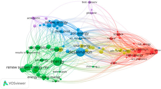 Figure 7 highlights the key journals contributing to renewable energy research. The blue and green clusters include journals such as Desalination, Energy, Renewable Energy, Solar Energy, and Renewable and Sustainable Energy Reviews, which lead in publication volume and citation impact. Energy accounts for 20% of total publications, while Applied Energy has the highest average citations per paper, with 31%. This trend reflects the predominant focus on clean energy generation and resource optimization.
