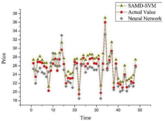 The setting of electricity prices is closely related to the interests of each participant, and accurate electricity price prediction can help participants understand future trends; however, due to the interference of many influencing factors, prediction accuracy is not ideal, so how to improve the prediction accuracy of real-time electricity prices has become an important direction in current research. The proposed SAMD model can categorize a time-series dataset into quality clusters of high, medium, and low levels, which can be represented as different kinds of real-time electricity price intervals to predict the general trends of the prices. The experimental results were used to analyze and verify the advantageous model to predict the real-time electricity prices, and it is suitable for different types of real datasets.