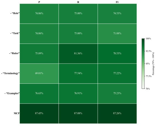 The experimental results above indicate that the five designed sub-prompts all enhance model performance to varying degrees, demonstrating the effectiveness and necessity of each sub-prompt.