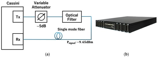 (a) Experimental setup for optical filter shift detection; (b) WhiteBox packet transponder Cassini.