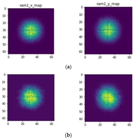 Heatmap examples: (a) original constellation; (b) cloned constellation generated by the DC-GAN.