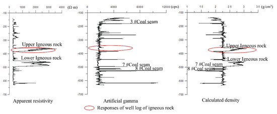 This study focuses on two thick igneous layers, identified as the ‘key layers’, which serve as the primary research targets. As revealed by borehole data, the No. 1 igneous rock layer, with an average thickness of 33.40 m, is stratigraphically positioned above the No. 5 coal seam, while the No. 2 igneous rock layer, averaging 40.24 m in thickness, overlies the No. 7 coal seam.