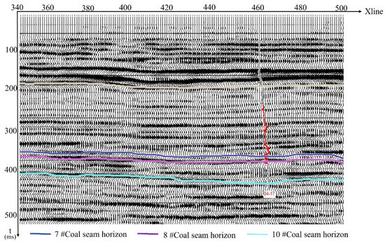 The raw seismic data used in this investigation were acquired by the China National Administration of Coal Geology in 2010 and subsequently processed using standard seismic data processing workflows. Figure 3 presents a representative post-stack seismic section along one inline direction, illustrating the seismic characteristics of the study area.