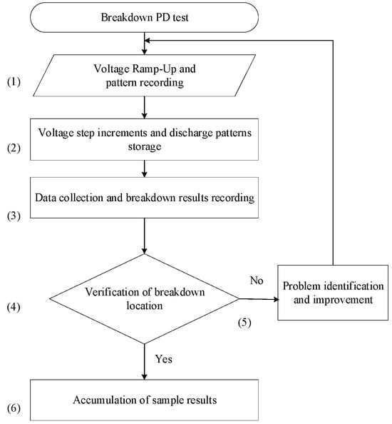 Figure 3 shows the breakdown test process flow chart, illustrating the sequential steps involved in the testing process.