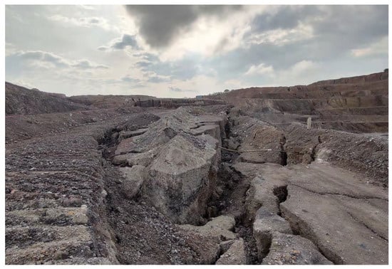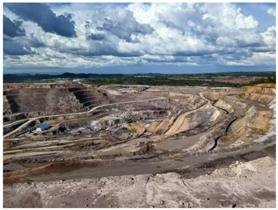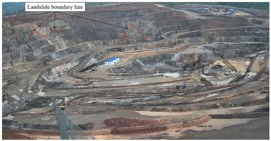The Kambove open-pit mine [32] is situated on the Katanga Plateau, in the town of Kambove, Katanga Province, in the southeastern part of the Democratic Republic of the Congo (DRC), as shown in Figure 6. The mine extends approximately 2.5 km east to west and 1 km north to south. With an annual production capacity of 1 million tons of ore, the final designed slope boundary height reaches 220 m. The surface rock strata of the Kambove open-pit mine exhibit severe weathering and are characterized by fault distributions. During mining operations, slope failures occur frequently. Based on field investigations, these failures are primarily classified as bedding-plane landslides, which are significantly influenced by mining-induced disturbances and meteorological conditions [33].