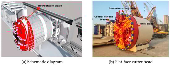 The excavation diameter of the tunneling machine is 3300 mm, and the flat-face cutterhead on the tunneling machine consists of one center fish tail cutter, 24 shell cutters, and 18 concrete cutters. The finite element model is shown in