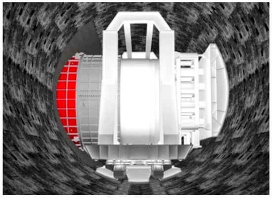 At the stage of initial working conditions, the main tunnel naturally deforms to a stable state under the action of external water and soil pressure. Then, at the stage of pre-support condition, the inner support system starts to work, and the support force is transferred to the segment at the vault and bottom of the arch through the upper and lower support boots. At the next stage of cutting conditions, the machine began to excavate; at the same time, the segments behind the cutting direction were affected by the reaction frame. And the total reaction force of the reaction frame is set as 1000 kN. The cutter head begins to act on the tunnel portal until the concrete of the tunnel portal is completely grinding and spalling.