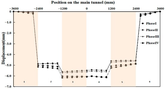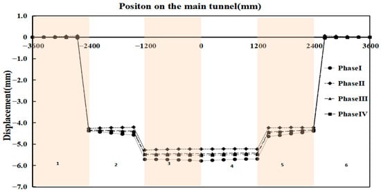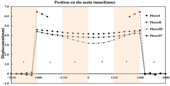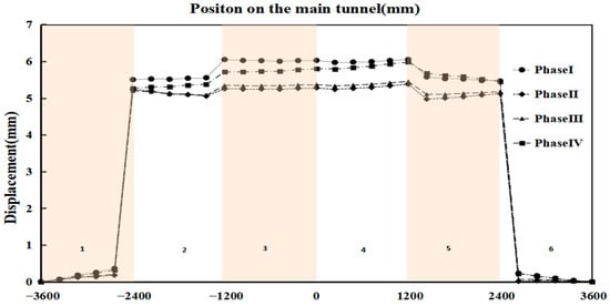 4.3. Displacement Analysis Along the Direction of the Main Tunnel