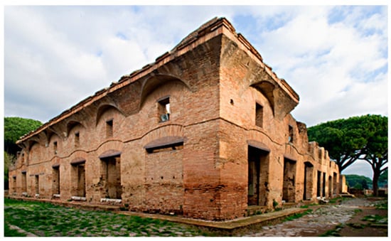 - Marinucci, A. L’insula Ostiense di Diana (R. I, III, 3-4); Arbor Sapientiae: Rome, Italy, 2013. [Google Scholar]
