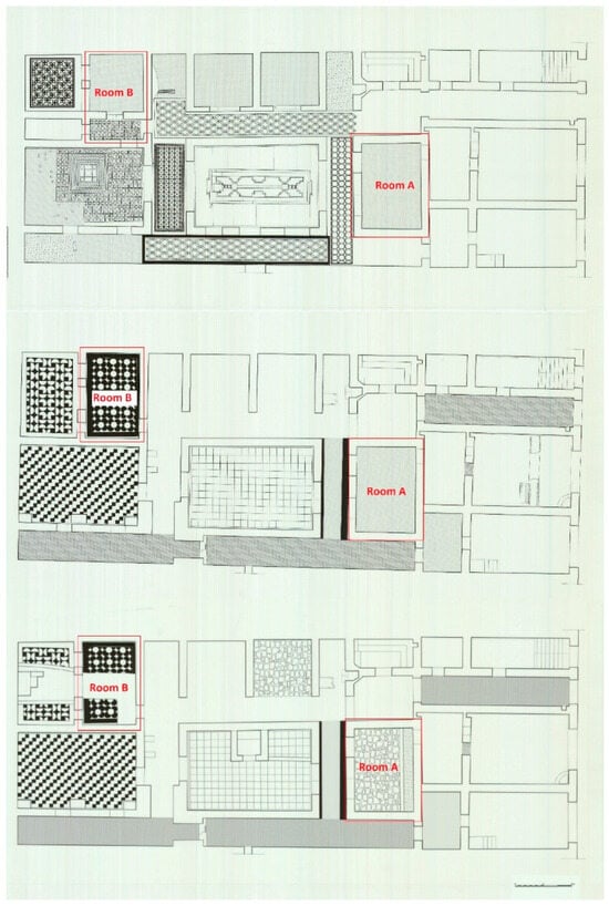 Tentative maps of the House of Diana during the different building phases are reported in Figure 2.