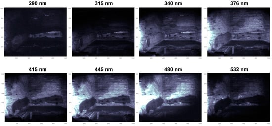 In Room B LIF measurements have been carried out and the 3D model has been created for the north-west area. In Figure 10, LIF images at the 8 wavelengths corresponding to the filters used are presented.