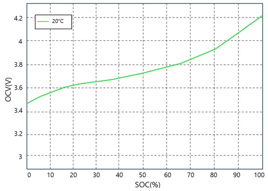 Figure 5 illustrates an equivalent circuit model representing the dynamic characteristics of the battery using electrical components. The open-circuit voltage (OCV) represents the intrinsic voltage of the battery, whereas the differential resistance (R