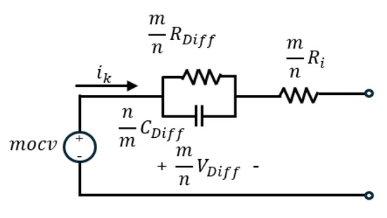 Additionally, satellite batteries are typically subjected to a screening process to minimize internal impedance variations within the packaged units. Therefore, for a battery pack composed of m series and n parallel cells, the impedance, OCV, and terminal voltage can be simplified as shown in