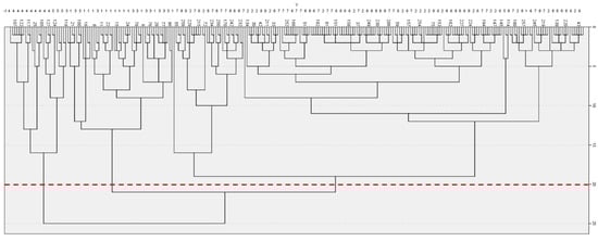 Before clustering analysis, the principal component factors extracted through principal component analysis are used as the variables for subsequent clustering analysis, which can effectively help to identify the similarities and differences between the samples, improve the clustering efficiency and accuracy, and at the same time enhance the interpretability of the clustering results, align better with practical needs, and provide a more scientific and objective reference for zoning traditional villages and residential cultural landscapes. In cluster analysis, villages are treated as independent data points, and their attributes are defined by principal component factors. The first level of clustering measures similarity or difference in cultural landscapes based on the “distance between villages” (similarity), and the nearest villages are merged into new categories based on the “distance between categories”. In the second level of clustering, the new categories in the previous level are regarded as new data points, and the similarity calculation and category merging are repeated until all the villages are aggregated into one large category, forming a cluster analysis tree diagram, which provides references and bases for the zoning of traditional villages and residential cultural landscapes. The number of clusters can be specified in advance according to the actual needs or judged reasonable by professional knowledge according to the belonging of the samples of each category [32].