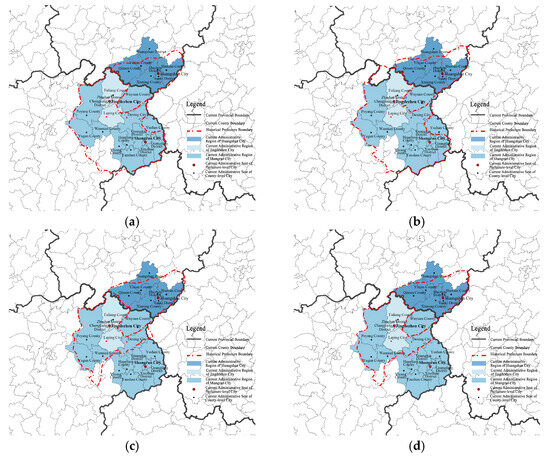In ancient times, when transportation and information dissemination were limited, administrative divisions significantly influenced the development of cultural landscapes. Typically, administrative boundaries also delineated cultural regions, and these divisions played a formative role in shaping cultural landscapes. Historically, the administrative status of the Jiangxi-Anhui junction district has remained relatively stable overall, although there have been adjustments to some county affiliations, as illustrated in Figure 8.