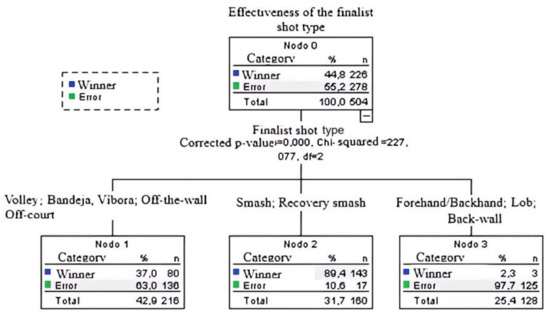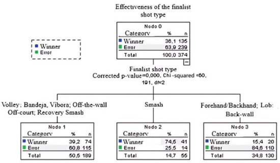 Figure 4 shows the decision tree of the shots in women’s padel according to the type of final shot and its effectiveness.
