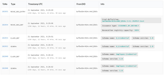 A Verifiable Data Registry is used in SSI to obtain the property of decentralization to create an identity system that supports privacy without a central authority. The verifiable data registry is typically a blockchain used to manage the DIDs and the public keys. The blockchain must be public [25] to enable access to everyone and can be permissioned or permissionless. In our proposal, the blockchain used is Sovrin, which is public and permissioned. It is important to store the DID of the issuers on the blockchain to facilitate the verification process carried out by the verifiers.