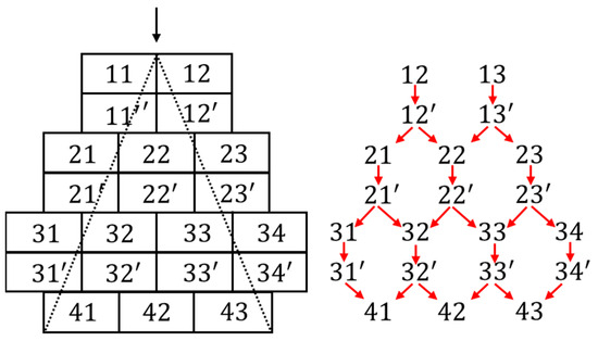 The number of corn kernels and the transfer process of force between the corn kernels were analyzed. When the discrete roller exerted force on corn kernels 11 and 12, corn kernels 11 and 12 generated an offset, made contact with corn kernels and transmitted the force to corn kernels and and so on, transmitting the force to other kernels. In combination with Figure 15, it can be seen that the force gradually diverges outward during the transfer process, taking the stressed kernel as the starting point, and its transfer process is an approximate “trapezoid”.