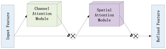 Figure 3 illustrates the structure of the Attention mechanism module, which consists of CBAM blocks. These blocks encompass both channel attention mechanism blocks and spatial attention mechanism blocks. The Channel Attention Module simultaneously performs max pooling and average pooling on the input feature maps. By performing max pooling or average pooling operations on the input feature maps with shapes (B, C, H, W), the spatial information of each channel (C) is compressed, resulting in an output with shapes (B, C, 1,1). In this process, for each channel, its spatial information is compressed into a single value by max pooling or average pooling operations, thereby achieving compression and extraction of global spatial information. This step aims to concentrate the information on the feature map onto the channel, so as to better capture the feature information of the input feature map on the channel. By utilizing these two features, the network’s representation ability can be greatly improved. The Spatial Attention Module applies average pooling and max pooling along the channel axis to the input feature map. Through these operations, the channel dimension (C) of the input tensor can be compressed to 1, thereby integrating global channel information into a single channel feature map with the shape of (B, 1, H, W). In this process, for each sample (B), the model will average and pool the features of the sample on the channel, thereby achieving compression and merging of global channel information. This operation helps reduce the number of parameters, decrease computational complexity, while preserving important channel feature information. Concatenate the two obtained matrices on the channels and use a convolutional layer to reduce the number of channels to 1 again, so that all the obtained feature information is distributed on one channel. Then, generate a weight vector using the sigmoid function from the output of the convolutional layer. CBAM is the process of multiplying the channel attention weights obtained from the Channel Attention Module with the original input feature map. This step is used to adjust the feature values of each channel, emphasizing the information of important channels and suppressing the information of unimportant channels. Multiply the spatial attention weights obtained in the Spatial Attention Module by the feature map obtained through the channel attention mechanism to obtain the final output result. The channel attention mechanism block acquires the weights of each channel, allowing the model to dynamically modify the significance of channel features and improve its capability to represent various features. The spatial attention mechanism block calculates the weights for each spatial location, allowing the model to dynamically alter the significance of spatial position information and improve its capacity to simulate different positions. The final adaptive feature response can be generated by multiplying the channel attention mechanism block with the spatial attention mechanism block. This allows the model to effectively capture and represent picture characteristics in both channel and spatial dimensions.
