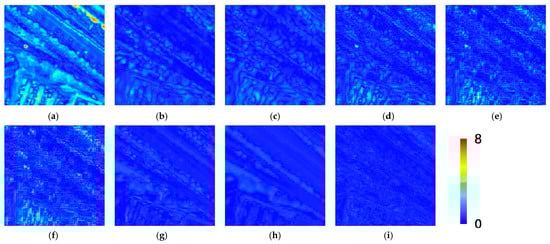 Residual images of fusion results on the simulated Chikusei data set: (a) PC, (b) GLP, (c) Hysure, (d) FUSE, (e) MAPSMM, (f) SFIMHS, (g) HyperPNN, (h) HMPCNMF, (i) IFNPMH.