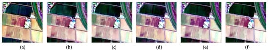 Visual comparison of fusion results of IFNPMH under the influence of different values: (a) , (b) , (c) , (d) , (e) 0, (f) HHIS.
