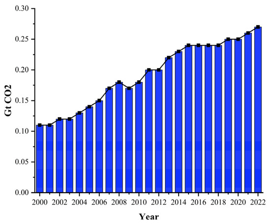 Global warming, primarily driven by greenhouse gas emissions, remains one of the most pressing global challenges. Industrial production and manufacturing are significant contributors, representing a substantial share of global energy consumption and CO2 emissions. The decarbonization of industrial activity is particularly challenging due to the high cost and developmental stage of many low-carbon solutions, as well as the long operational lifespans of industrial assets, which limit their replacement frequency. According to the International Energy Agency (IEA) [23], industrial activity accounted for 37% (166 EJ) of global energy consumption in 2022, resulting in approximately 25% (9.0 Gt) of worldwide CO2 emissions. In particular, in 2022, the aluminum sector emitted approximately 0.27 Gt of CO2, representing 0.7% of global emissions and nearly 3% of direct industrial emissions (Figure 2). This trend has been exacerbated by rising aluminum production, driven by population growth and economic expansion. These estimates align with the most recent and finalized data available in the database of annual time series on greenhouse gas emissions from energy, which is updated biannually, with the latest comprehensive dataset covering the year 2022.