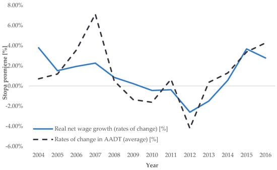 - When it comes to wages, a statistically significant correlation was found between the annual changes in real net wage growth and the average annual changes in road traffic demand intensity, which indicates the significant influence of purchasing power on the level of motorization, as well as the intensity of personal car use;