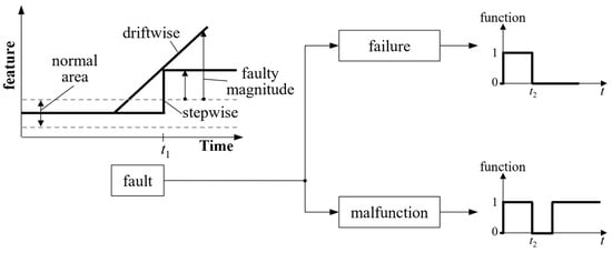 Development of the events (driftwise, stepwise, malfunction, and failure) from a fault [10].