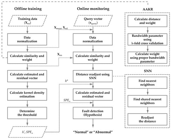 Owing to these advantages, AAKR can also be applied to complex processes such as time-varying processes and multimodal processes. The fault detection procedure using AAKR is shown in Figure 2.