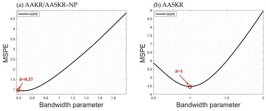 Comparison of the bandwidth parameters AAKR, AASKR–NP, and AASKR: (a) AAKR/AASKR–NP; (b) AASKR.