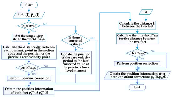 The zero-velocity interval constraint algorithm has been detailed in Section 2.2. The process of the single-foot and dual-feet fusion constraint algorithm is shown in Figure 8.