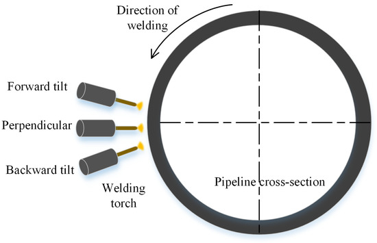 Oil and gas pipelines bear the responsibility of transporting oil and gas resources, serving as a bridge that connects supply and demand. Accelerating the construction of oil and gas pipelines is critical support for the high-quality development of the industry but also an effective aid to steady economic growth. Due to the constraints of on-site construction conditions, all-position welding methods are predominantly used in pipeline construction at present [1,2], involving manual or semi-automatic welding, which has relatively low efficiency. Compared with the traditional welding methods, narrow-gap welding reduces the bevel cross-sectional area, transforming the previously required large-angle, multi-layer, multi-pass welding process into multi-layer, single-pass welding process. This not only reduces the material consumption and improves the welding efficiency but also decreases heat input and thermal deformation, making it suitable for all-position welding. As a result, this method has been widely used in the on-site construction of long-distance oil and gas pipelines.