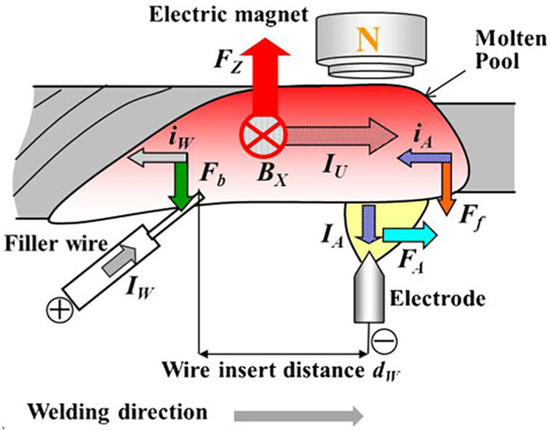 - Jian, X.; Wu, H. Influence of the Longitudinal Magnetic Field on the Formation of the Bead in Narrow Gap Gas Tungsten Arc Welding. Metals 2020, 10, 1351. [Google Scholar] [CrossRef]