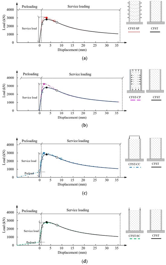 Comparisons of load-deformation relationships for CFST columns for different preloading schemes [].
