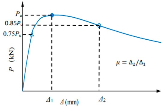 To discuss the ductile properties of different preloaded CFST specimens, the ductility index (μ = ∆2/∆1) was introduced, as shown in Figure 13. As shown in Table 4, in comparison to the ordinary CFST column, CFST-SC had the largest ductility index because the interaction between the concrete and the steel worked later than those of the other specimens. Thus, the curve softened slowly. In contrast, the softening of the second half of the CFST-CP curve was evident, and therefore, the ductility index was the lowest.