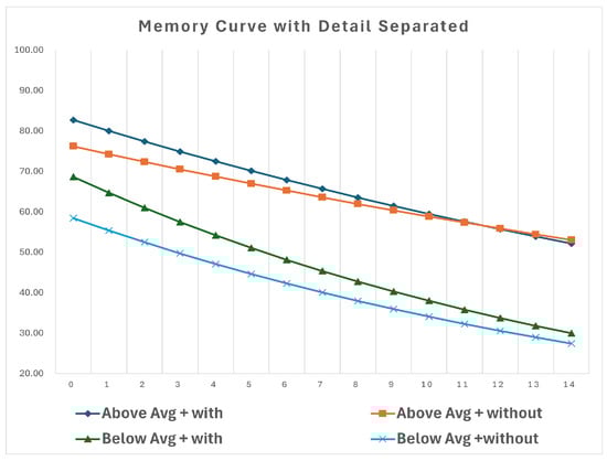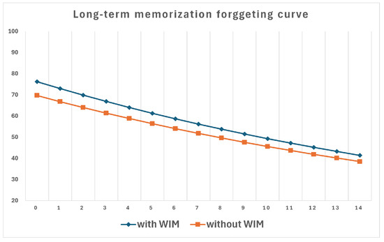 A graph was created using a method similar to the forgetting curve introduced by Hermann Ebbinghaus [31]. The forgetting curve provides a model for the exponential decay of memory retention over time. This model can be expressed as follows: