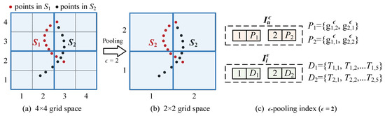 - The grid distribution representation and MCGϵ are generated for each dataset in . These are then inserted into the lower and upper layers of the pooling index.