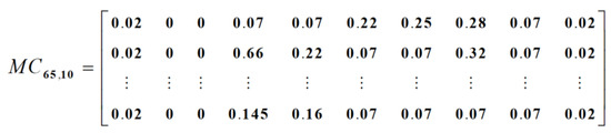 In light of the standards shown in Table 2, the strength of association between non-core parts and core parts in each module is evaluated in turn. Then, the association strength between non-core parts and modules is calculated according to Formula (4). To ensure the consistency of driving factors in the process of module division, the weights used in Section 5.2 are still used for the five types of association relationships. The correlation matrix established between non-core parts and modules is shown in Figure 10.