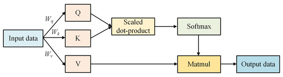 where , , are learnable weight matrices and is the reduced feature dimension. Next, the similarity between the query and key vectors is computed using a dot product, and the result is normalized with the Softmax function to generate the attention weight matrix A: