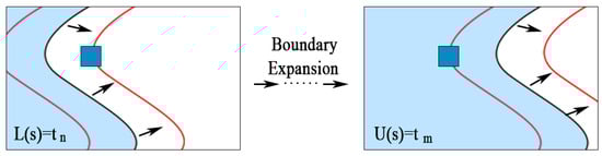 We designed an experiment to test for a significant difference in stability between pixels around the true boundaries and the rest. In our experiment, we randomly selected 3000 samples from the image to form a set S and filtered out those in the background. The samples were labeled as positive if their distance to the edge was less than 1 or labeled as negative if was greater than 1. As Figure 4 shows, for each pixel , we recorded the lower segmentation threshold bound and the upper segmentation threshold bound when it appeared near the edges. By measuring the range of the two thresholds, we could compare the distributions of in the positive and negative groups to see if there existed a certain tendency.