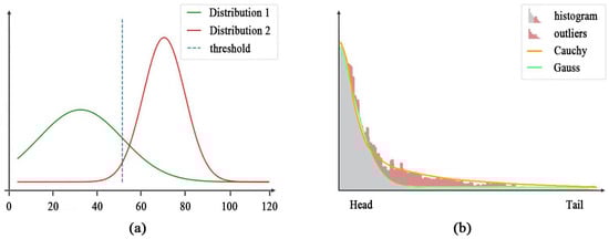 Therefore, we propose replacing the Gaussian distribution with a long-tailed distribution, for example, the Cauchy distribution, as shown in Figure 6b. A long-tailed distribution in statistics is typically characterized by a highly imbalanced distribution, where the majority of observations are concentrated in the front (i.e., the short tail) of the distribution, while the tail part (the long tail) contains relatively few but highly significant observations.