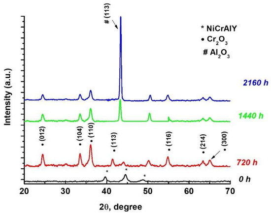 - Peng, B.; Xu, Y.X.; Qimin Wang, Q. High-temperature structural evolution and mechanical properties of oxygen-containing NiCrAlY coatings. Appl. Surf. Sci. 2024, 671, 160745. [Google Scholar] [CrossRef]