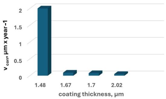| Ecorr, [mV] | icorr, [nA × cm−2] | Vcorr, [mm × year−1] | Rp, [KΩ × cm2] | icorr, [nA × cm−2] | |||