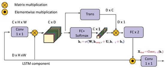 The module starts by applying a convolutional layer to the input tensor , where C, H, and W denote the number of channels, height, and width, respectively. The convolutional output is then elementwise multiplied with the original input tensor to emphasize meaningful temporal patterns: