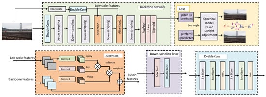 As shown in Figure 4, the Feature Fusion Mechanism integrates spatial and temporal features to produce a unified representation that captures both low-scale and high-resolution information. The module consists of four primary stages: backbone network feature extraction, attention-based feature fusion, down-sampling layers, and final convolutional transformations. Spatial features are extracted from input imagery through a backbone network, which includes multiple convolutional and down-sampling layers. Low-scale spatial features are interpolated and passed through additional double convolution layers to align their resolutions with backbone features.