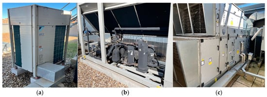 Energy systems in B2: (a) VRV, (b) VRV central, (c) and an Air Handling Unit with a heat exchanger.