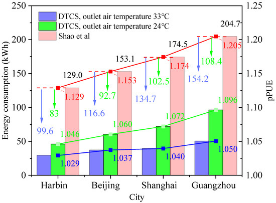 Comparison of annual average energy consumption and pPUE values, Shao et al. [22].