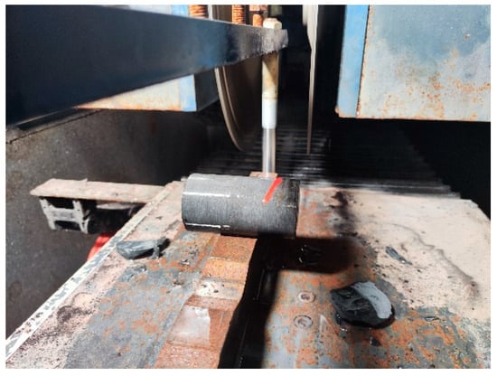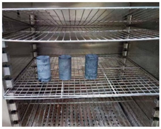 Firstly, place the prepared limestone specimens in a constant-temperature drying oven with a set temperature of 105 °C, and keep the specimens drying at this temperature for 48 h to achieve a completely dry state. After the drying process is completed, immediately take out the specimens and measure their mass and size in the dry state. Subsequently, seal the measured specimens to prevent them from absorbing water [].