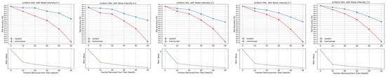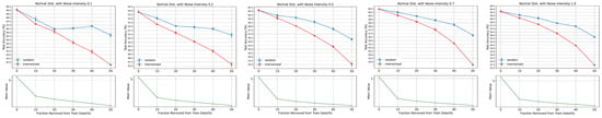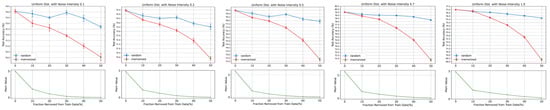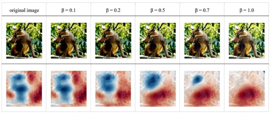 In this study, we utilized two sampling methods—uniform distribution and normal distribution—to add noise to the original images. Noise sampled from a normal distribution is often added to images to emulate real-world conditions, thereby making deep models more robust to possible variations. Compared to the concentrated nature of normal distribution, the values of uniform distribution are more dispersed. As we aim to have a control group for comparison, we chose to sample noise values from a uniform distribution to compare with those sampled from a normal distribution. The noise values sampled from both distributions are normalized to a range between 0 and 1. The noise adding is as described in (1), where X represents the original image, denotes a sampled noise image, and denotes the image mixed up with noise, and a hyper-parameter is used to control the noise intensity, as follows []: