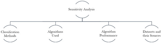 To better understand the relationship between machine learning applications in transformer fault detection and classification, as part of the systematic review, a sensitivity analysis was conducted to assess the robustness of the synthesized results where various transformer fault classification methods, algorithms, datasets, sources, and performance are covered to aid in ensuring scrutinized results that are reliable. Figure 3 shows the sensitivity analysis process used for this study.